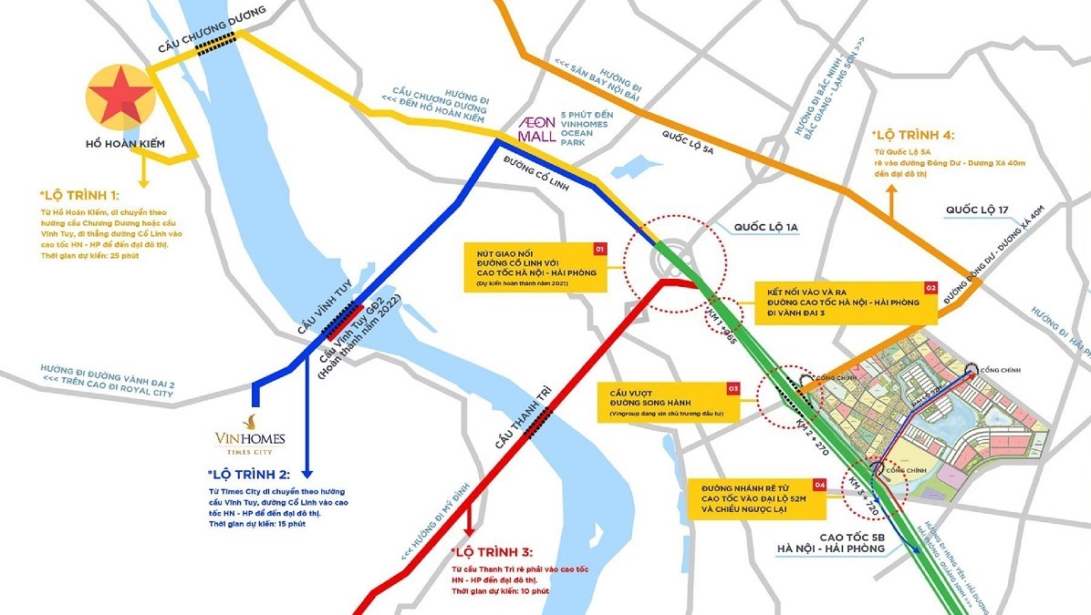 - Kết nối với trung tâm Hà Nội qua cầu Chương Dương, Long Biên, Vĩnh Tuy, Thanh Trì