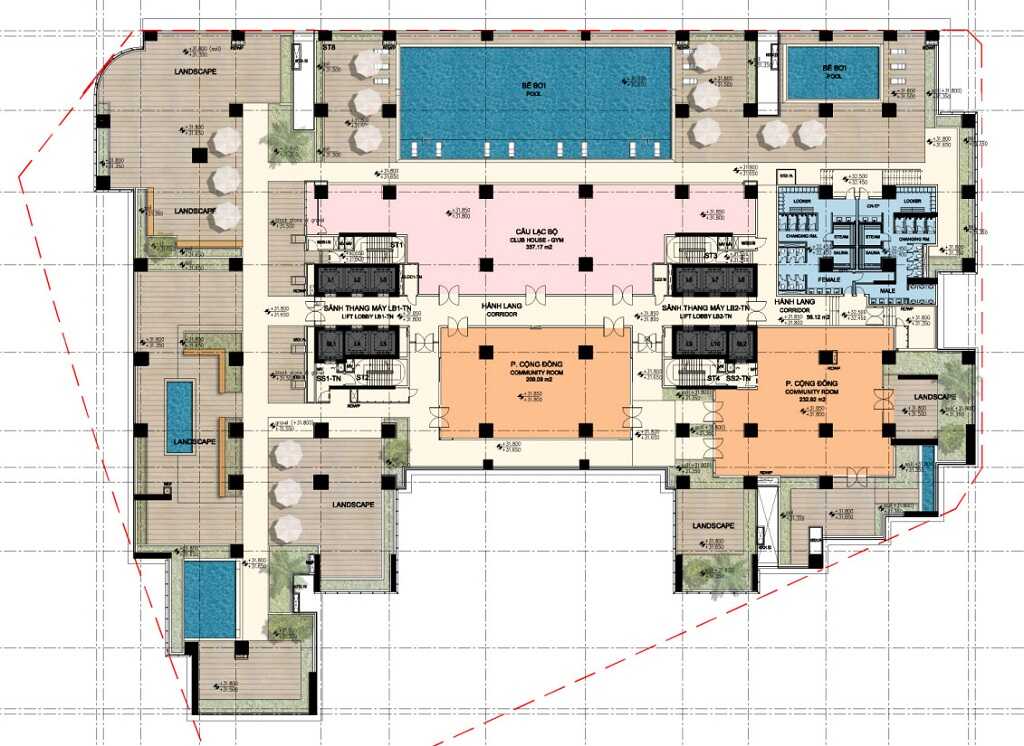 Tổng diện tích sàn xây dựng: 128.685,12m2 (Không tính phần tầng hầm và phòng kỹ thuật).