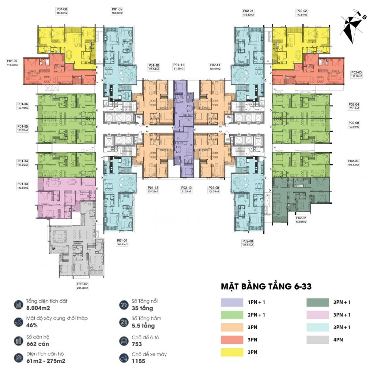 Quy mô: 35 tầng (khoảng 500 căn hộ) + 05 tầng hầm + 01 tầng kỹ thuật + tum thang.