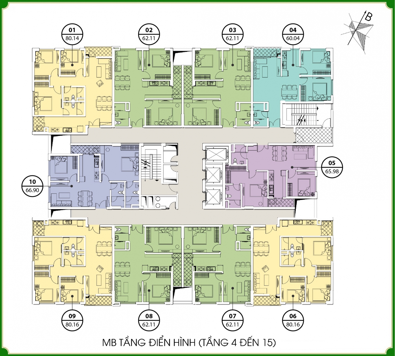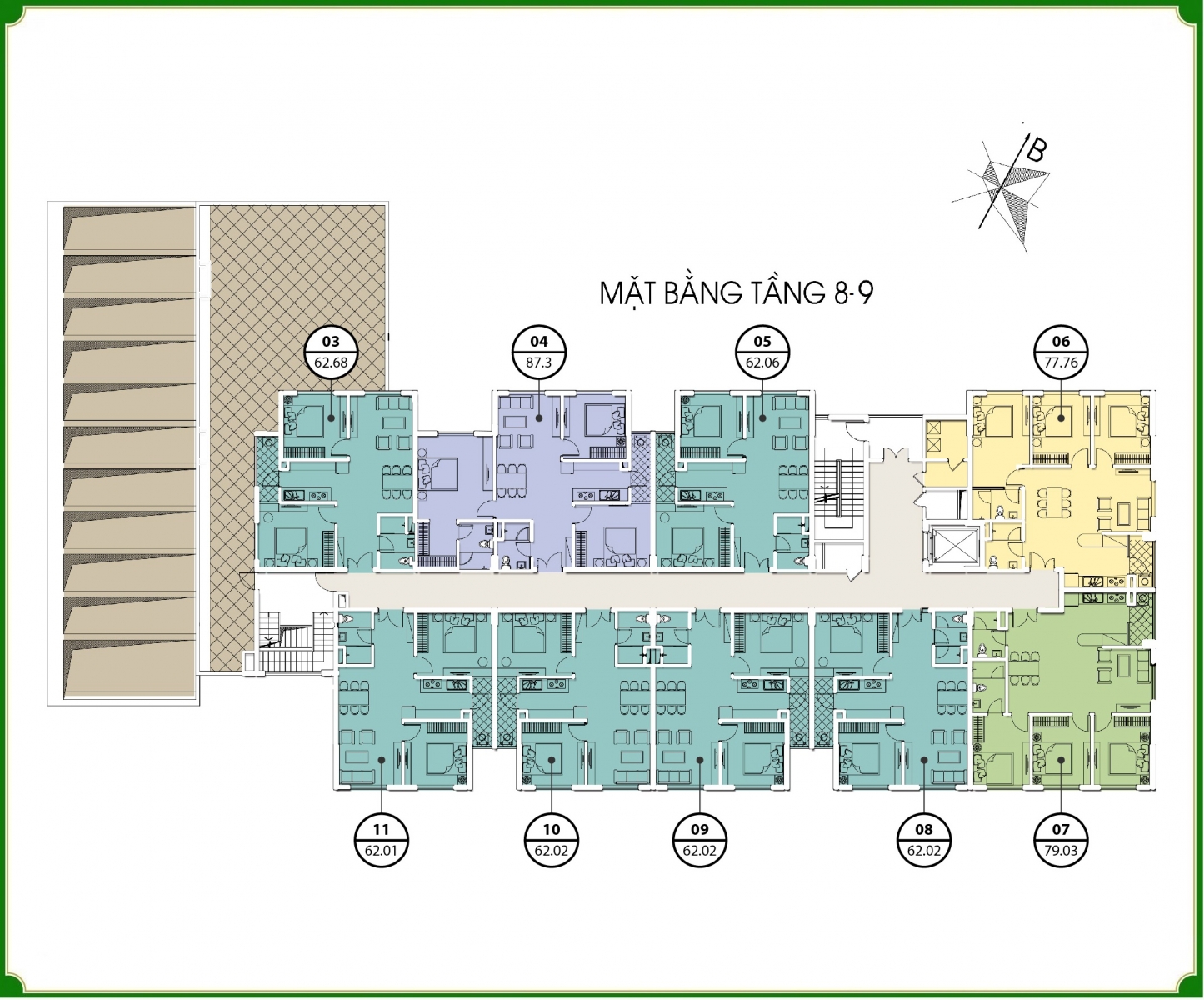 Các căn hộ có diện tích từ 60m² – 87m²; bố trí 2 – 3 phòng ngủ đáp ứng được nhu cầu đa dạng của khách hàng. Tòa A và tòa B của chung cư Valencia Garden được thiết kế với chiều cao 15 tầng cung cấp ra thị trường Hà nội hơn 137 căn hộ chung cư cao cấp được thiết kế từ 2 đến 3 PN và diện tích từ 62.2 m2 – 80.2 m2 phòng ngủ với hoàn thiện nội thất cơ bản.