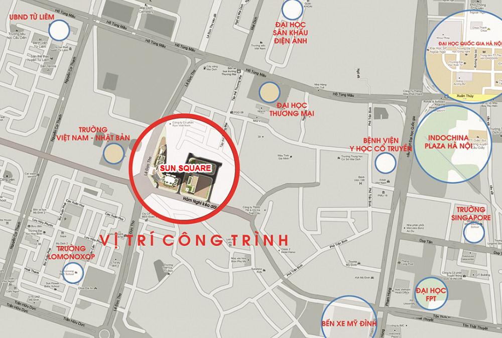 Bao quanh khu vực là các trung tâm hành chính, văn hóa, kinh tế, xã hội của TP Hà Nội. Đặc biệt, Sun Square nằm trên tuyến đường Lê Đức Thọ dẫn vào sân vận động Quốc gia Mỹ Đình, và chỉ cách bến xe Mỹ Đình và đường Vành đai 3 khoảng 500 m, rất thuận tiện di chuyển vào trung tâm Hà Nội, sán bay Nội Bài hoặc các tỉnh khác.