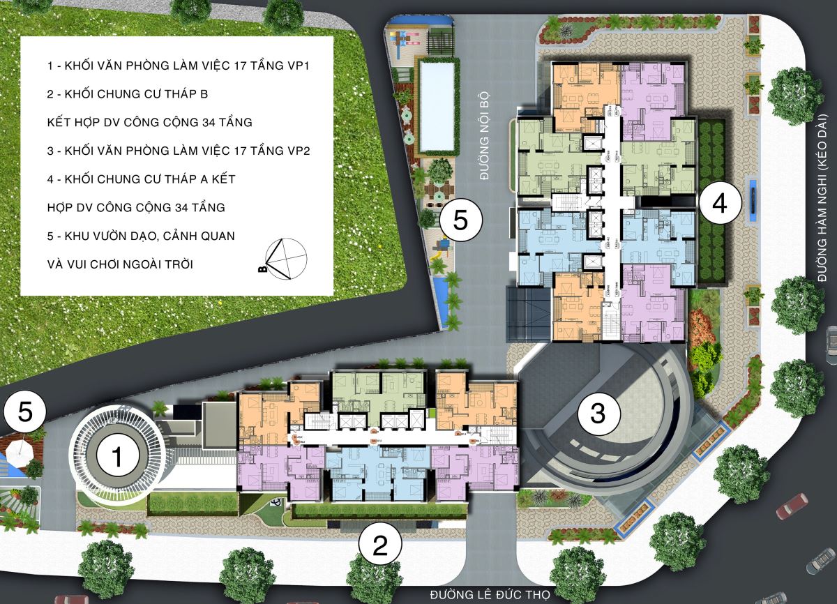 Dự án Sun Square Lê Đức Thọ gồm 5 tòa nhà được xây dựng trên khu đất có diện tích 15.500m2 với 9 khu chức năng: 2 khu văn phòng 17 tầng, chung cư có 2 block A và B cao 30 tầng, văn phòng 21 tầng, có 3 tầng hầm, diện tích mỗi tầng 5261m2.