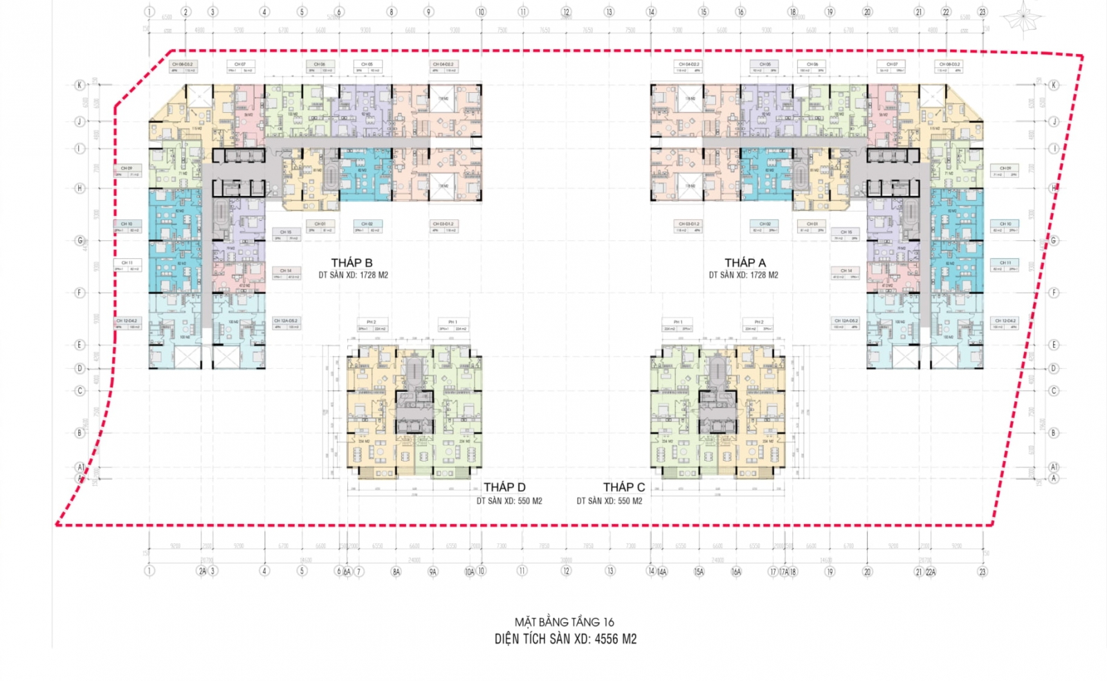 • Quy mô: 04 tòa nhà cao 16 tầng và 03 tầng hầm