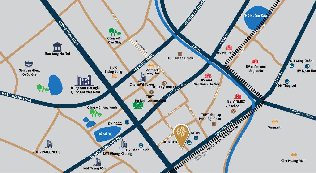 - Gần các bệnh viện lớn: Bệnh viện Việt Pháp (H Clinic Trung Hòa), Viện nhi Trung Ương, Viện nội tiết Trung Ương…