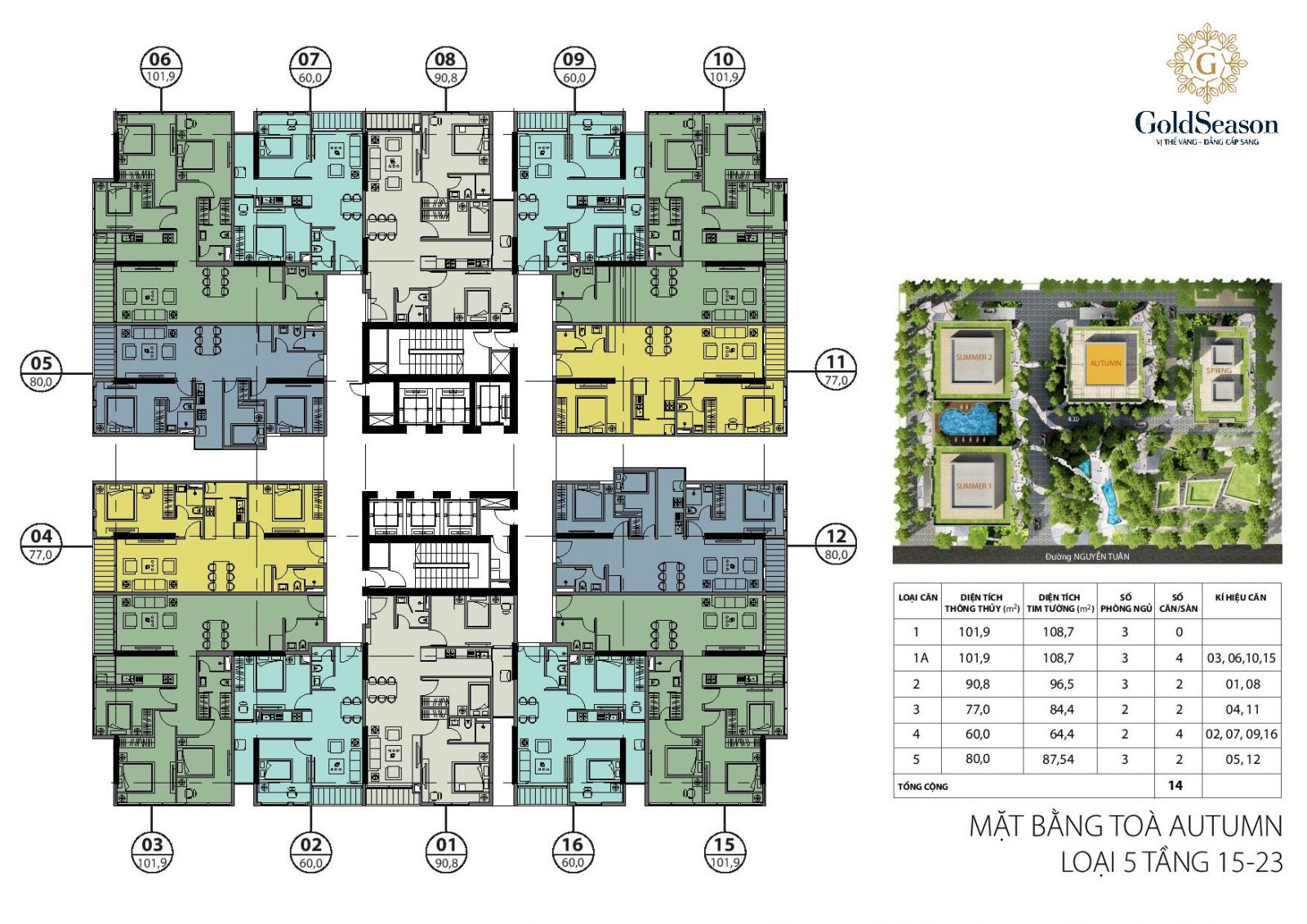 Gold Season Nguyễn Tuân là một công trình kiến trúc đột phá mang nét phóng khoáng đậm chất Mỹ vừa sôi động sầm uất lại vừa đảm bảo yếu tố riêng tư kín đáo và an toàn. Chung cư Gold Season hội tụ 99 tiện ích cao cấp, đồng bộ đáp ứng tối đa nhu cầu cho một cuộc sống thoải mái, tiện nghi với phong cách hoàn toàn khác biệt. Mỗi nơi trong dự án đều khai thác triệt để từng góc nhìn, chau chuốt đến từng chi tiết để đạt tới sự đơn giản, tinh tế, đẳng cấp