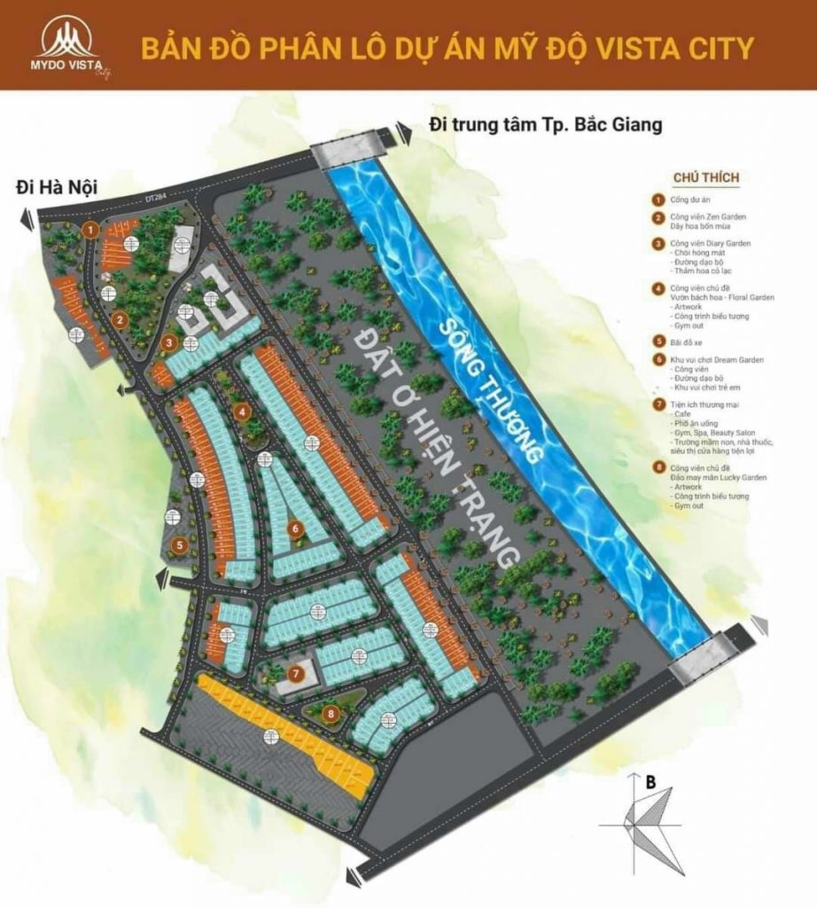 Mỹ Độ Vista City Bắc Giang có quy mô 9,5ha được phân thành 2 phân khu với tên gọi Orien Vista và Western Vista. Đường giữa 2 phân khu rộng 16 m (vỉa hè 4,5m x 2), lòng đường 7 m nối dài từ Đường chính 21m khu shophouse Hoa Ban chạy qua hồ điều hòa công viên 3ha đến Đường Thân Nhân Trung.