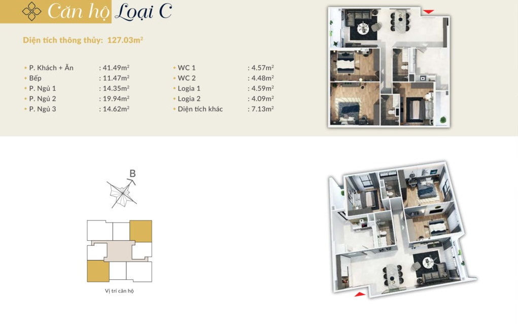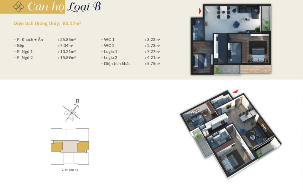 Tầng 5 – 33 là khu căn hộ cao cấp, được thiết kế đa dạng với diện tích từ 85 – 136m2, mật độ 8 căn/sàn. Các không gian căn hộ cũng như không gian chung đều mang đậm yếu tố sinh thái. Mỗi căn đều có 2 logia nhằm đảm bảo mọi không gian đều tối đa thông gió và tràn ngập ánh sáng thiên nhiên thoáng đãng, mát mẻ.