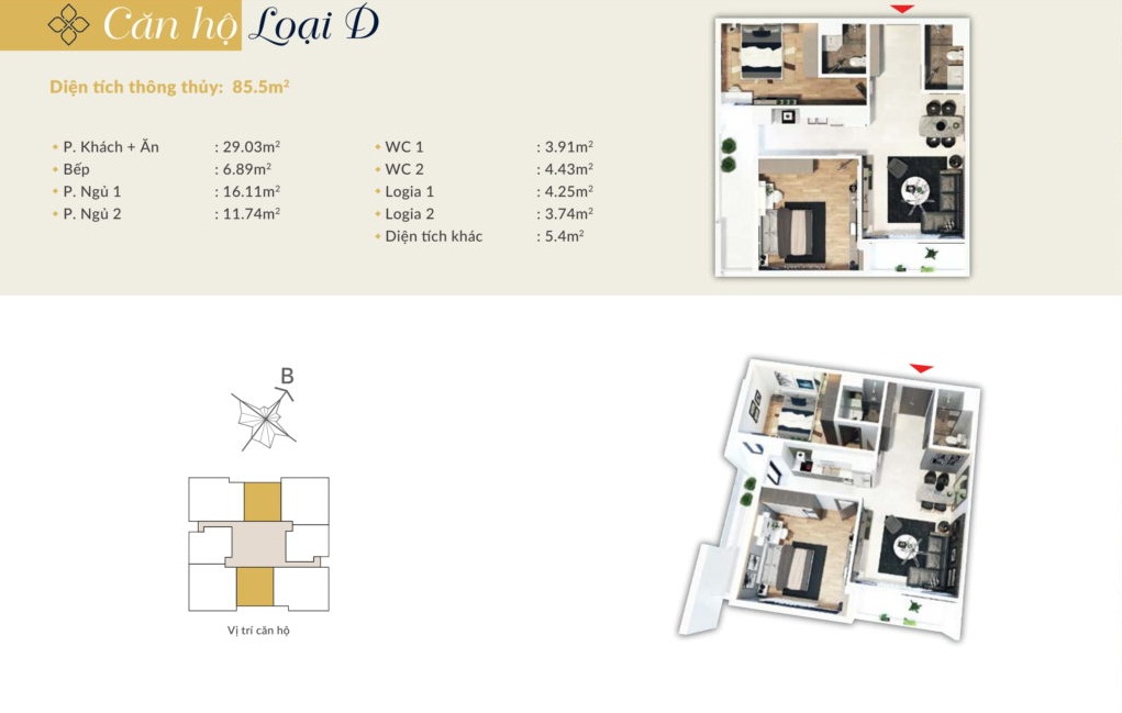 Căn hộ dự án được thiết kế 2 ban công (1 ban công view và 1 ban công phơi đồ), ban công mỗi căn được thiết kế nhằm tối ưu hóa công năng sử dụng cho chủ nhà, tất cả các phòng đều có hai mặt thoáng và đón gió tự nhiên. Phòng ngủ và phòng khách được thiết kế theo lối không gian hiện đại ra sự thông thoáng và rộng rãi.