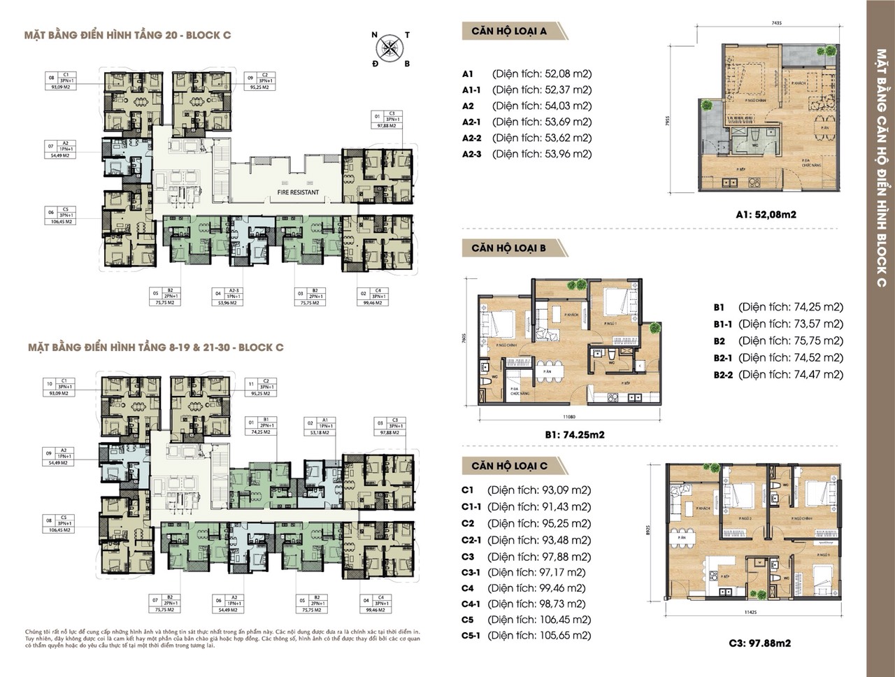 Diện tích căn hộ: Từ 44 – 136 m2 ( Từ 1 -4 Phòng ngủ)