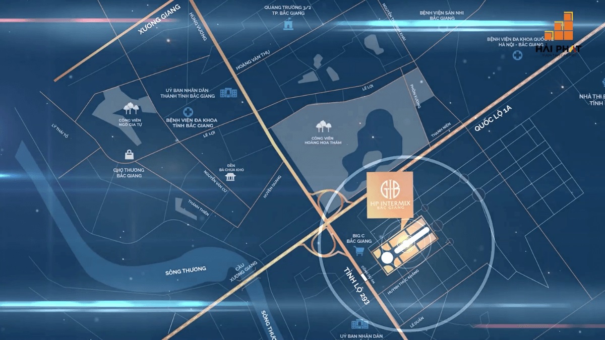 HP Intermix Bắc Giang nằm sát siêu thị Big C, đường Tây Yên Tử, phường Tân Tiến, TP. Bắc Giang. Dự án Hải Phát Bắc Giang cách trung tâm TP. Bắc Giang 1km, cách TP. Bắc Ninh 25km, cách TP. Hà Nội khoảng 70km, cách Lạng Sơn 100km. Toạ lạc tại trung tâm mới của Bắc Giang, dự án Hải Phát Intermix Bắc Giang sở hữu lợi thế giao thông thuận lợi cùng sự kết nối vượt trội với các tiện ích ngoại khu đắt giá như Công viên Hoàng Hoa Thám, Trung tâm thương mại Big C, Trung tâm văn hóa Cánh Diều,…
