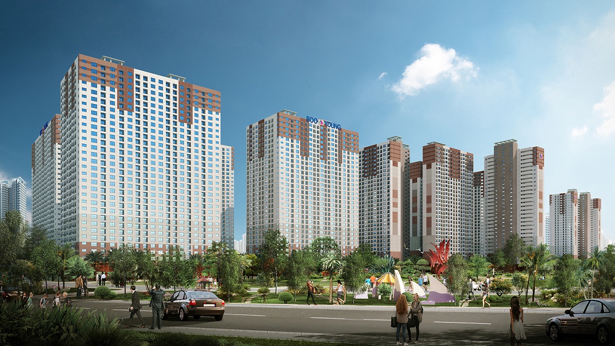 Quy mô: 6 tòa cao 30 tầng và 2 tầng hầm, gồm 5.000 căn hộ