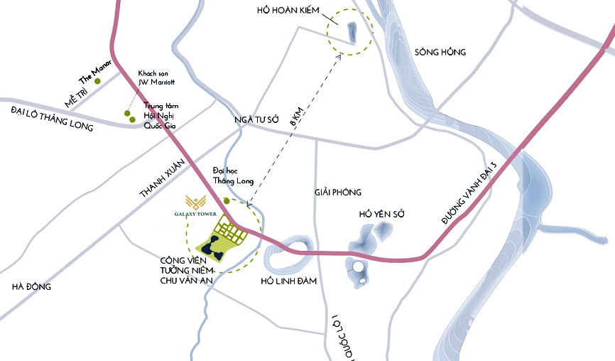 Cowaelmic Residence có vị trí thuận lợi, 4 mặt 4 hướng giáp nhiều tuyến đường quan trọng mang ý nghĩa phát triển chiến lược của khu vực phía Tây và Đông Nam Thủ đô như: Đường Vành đai 3, đường 70A, đường nội đô Kim Giang, đường Bằng Liệt giáp bán đảo Linh Đàm.