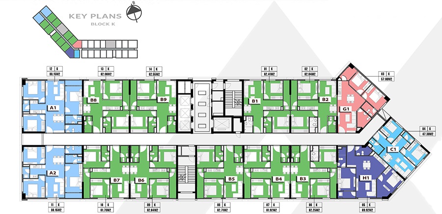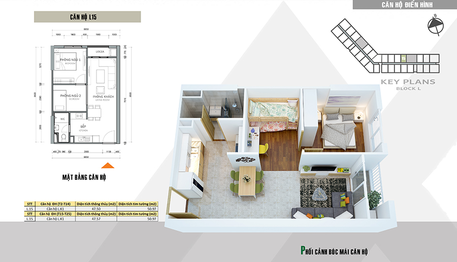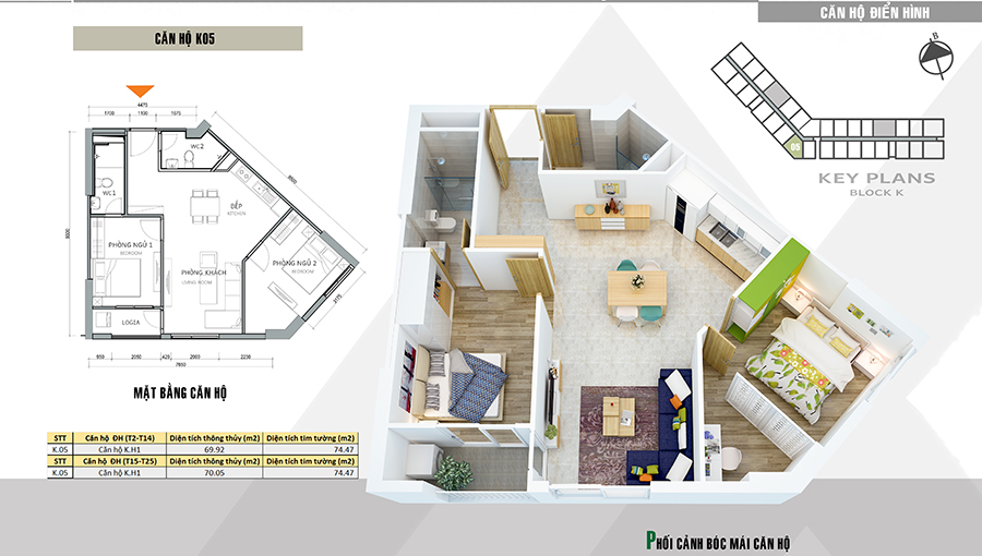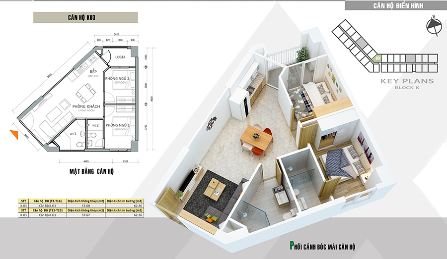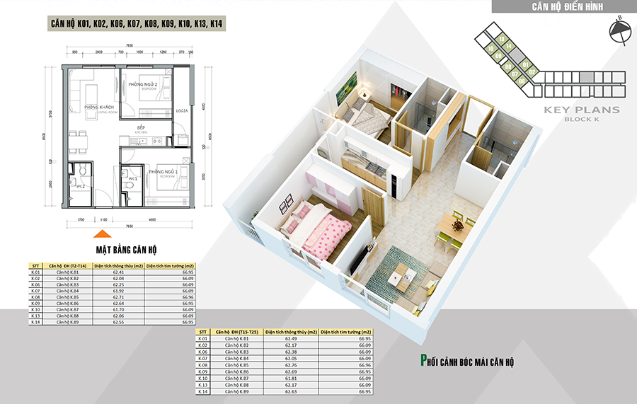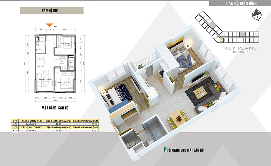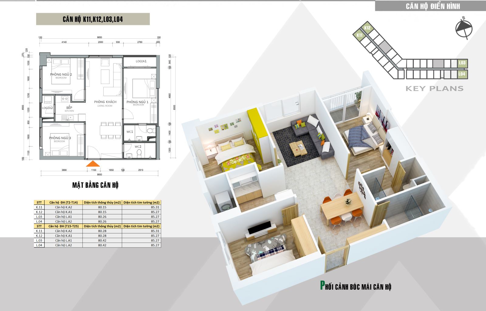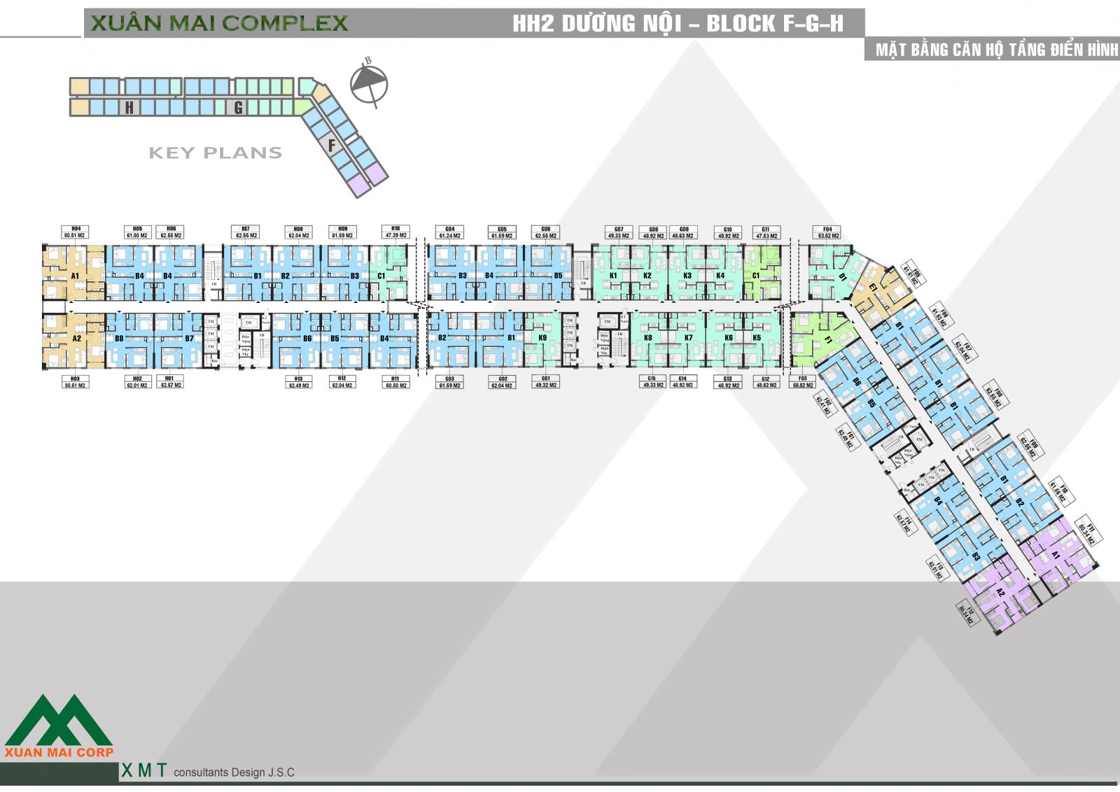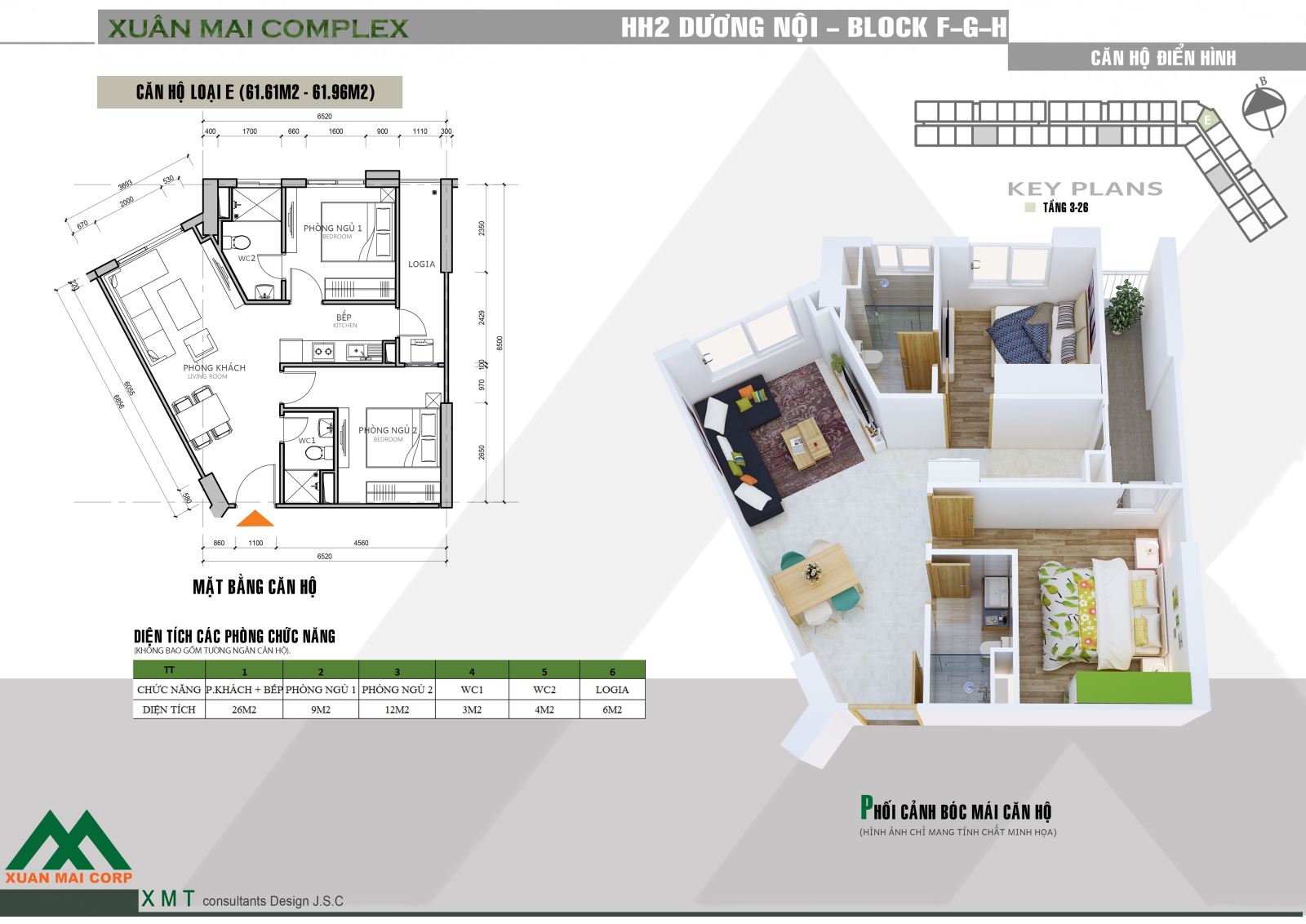 Các căn hộ tại Xuân Mai Complex có diện tích linh hoạt từ 47,3m2 đến 80,42m2, bố trí từ 2 đến 3 phòng ngủ, đặc biệt phù hợp với các gia đình trẻ. Thiết kế khoa học, hiện đại, tối ưu hóa công năng sử dụng của từng phòng và tận dụng tối đa cửa sổ, ô thoáng giúp không gian trong phòng luôn thông thoáng, ngập tràn ánh sáng, nắng, gió tự nhiên.
