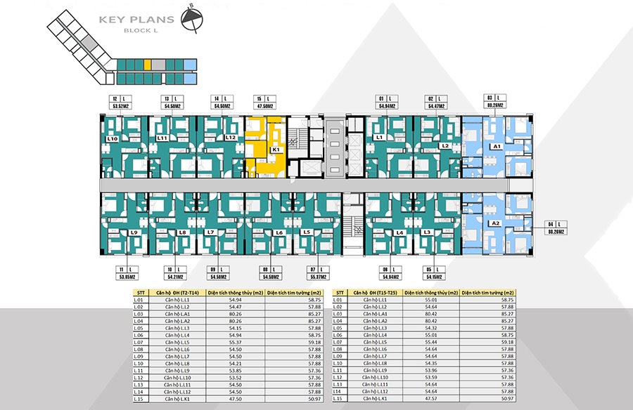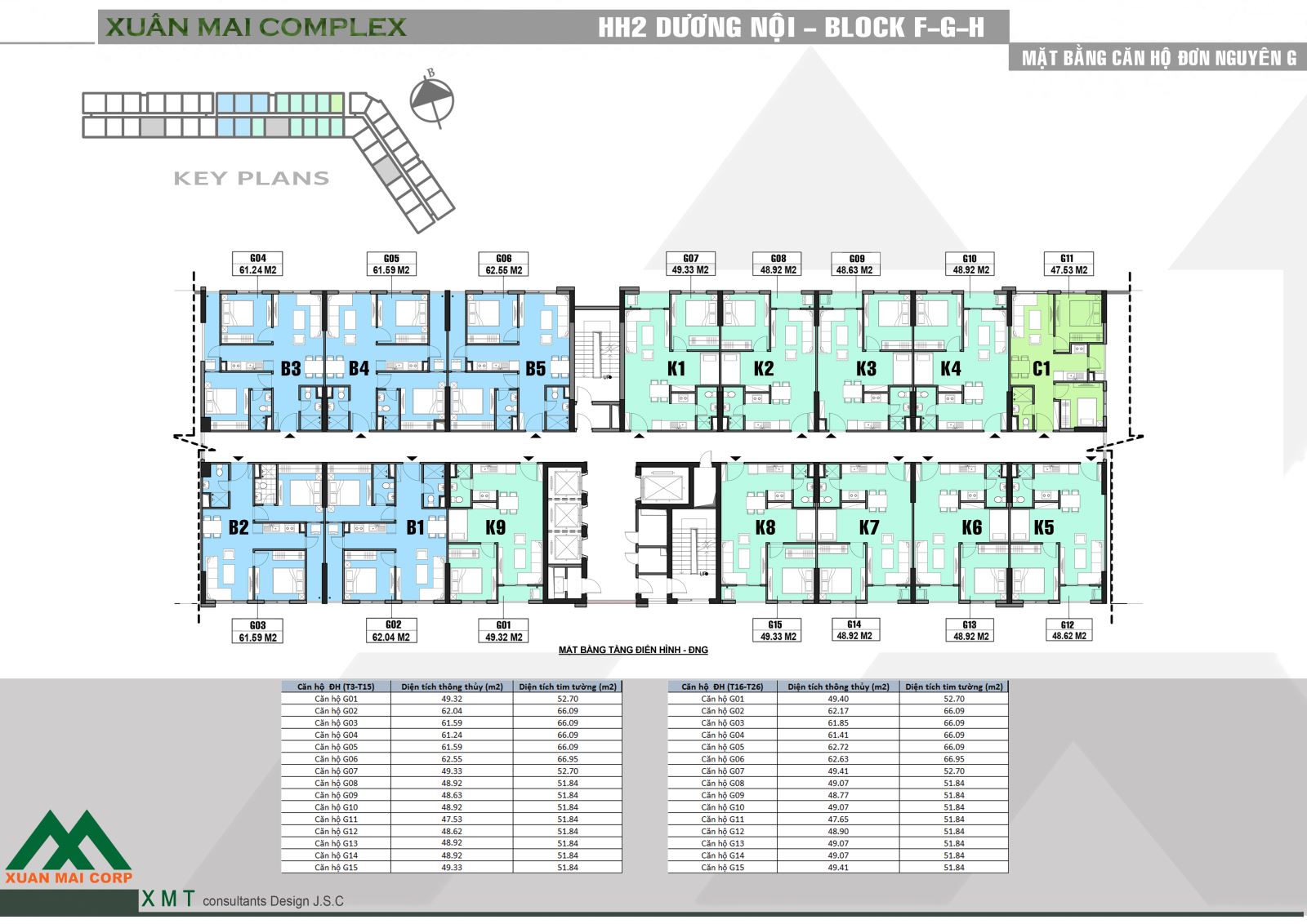 Tầng hầm: 2 tầng thông nhau ở cả 5 khối nhà KL và F,G,H