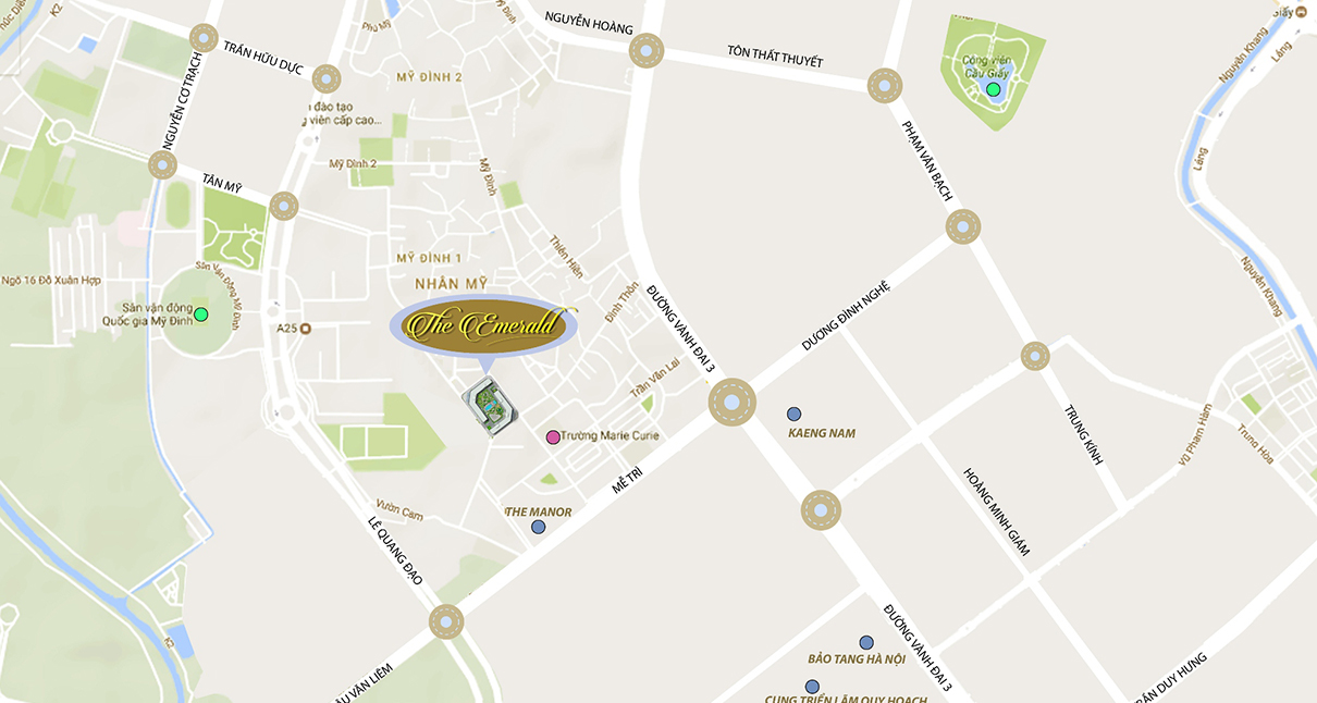 The Emerald có vị trí vô cùng đắc địa, nằm tại khu đất CT08 Mỹ Đình, thuộc khu đô thị Manor, trung tâm của khu vực Mỹ Đình. Dự án nằm ngay cạnh khu đô thị Mỹ Đình – Sông Đà. Đây là khu vực đô thị đẹp, phát triển bậc nhất khu vực Mỹ Đình hiện nay và cả trong tương lai. Đây là khu vực đang được tập trung phát triển của Thủ đô, sở hữu giao thông đồng bộ và cơ sở hạ tầng phát triển.