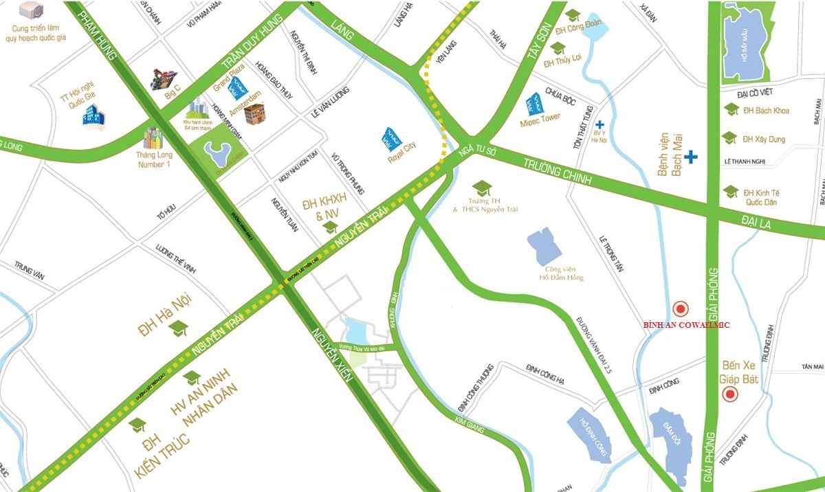 Dự án Bình An Cowaelmic tọa lạc tại Số 118 Nguyễn Văn Trỗi, phường Phương Liệt, quận Thanh Xuân, TP Hà Nội nơi sở hữu vị trí vàng trung tâm của 3 quận Hoàng Mai – Thanh Xuân – Hai Bà Trưng. Nơi giao thoa của luồng giao thông từ Tây sang Đông. Dự án nằm trong khu vực có hệ thống giao thông đồng bộ, hiện đại.