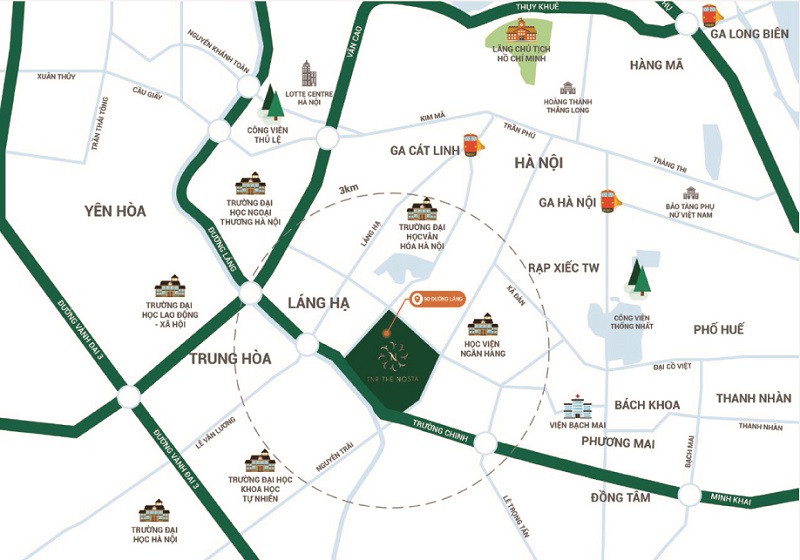 Từ TNR Đường Láng có thể dễ dàng kết nối với các tuyến giao thông huyết mạch để di chuyển vào trung tâm thành phố cổ kính, hoặc đi tới các khu vực đang có sự phát triển năng động và hiện đại nhất của Hà Nội. Tại vị trí “vàng” khó nơi đâu sánh được, TNR 90 Đường Láng mọc lên như một biểu tượng thịnh vượng, một mốc son đánh dấu chặng đường phát triển mới của Hà Nội trong thế kỷ 21!