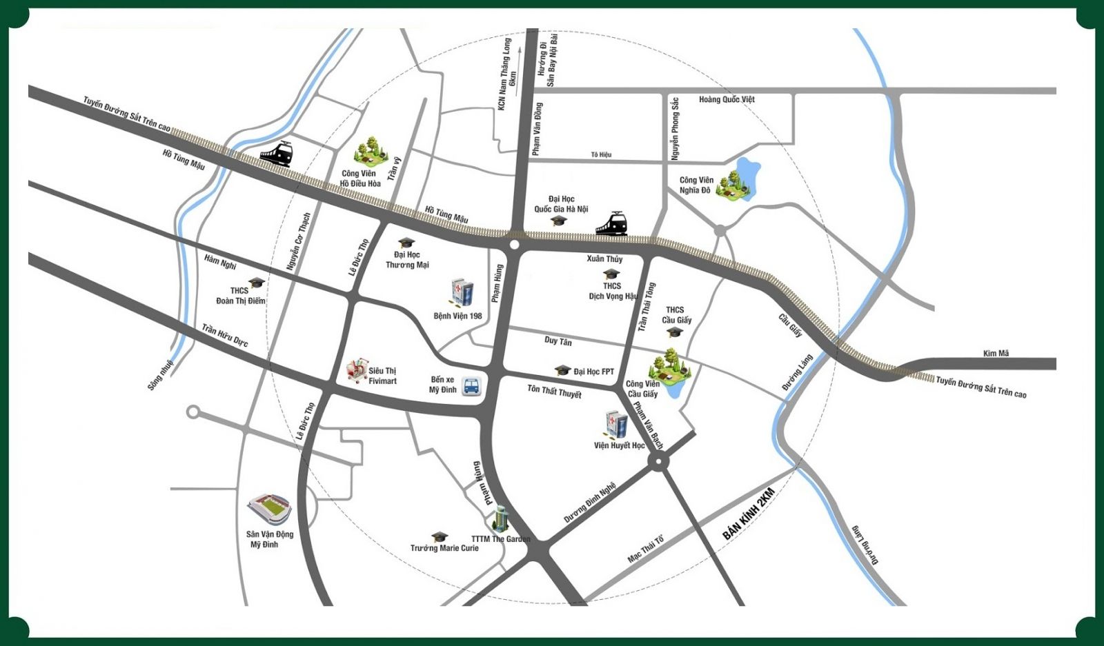 Chỉ trong vòng bán kính 1km, hàng loạt các công trình hạ tầng xã hội hàng đầu (hệ thống trường nhiều cấp chất lượng cao Đoàn Thị Điểm, Marie Curie, Lê Quý Đôn, Trường chuyên Đại học Quốc Gia, Bệnh viện 198- Bộ Công An, Bệnh viện Huyết học và Truyền máu TW, công viên Cầu Giấy, công viên Hòa Bình…) là những “điểm Vàng” trong quyết định lựa chọn Chung cư New Space Mỹ Đình làm một chốn an cư đẳng cấp.