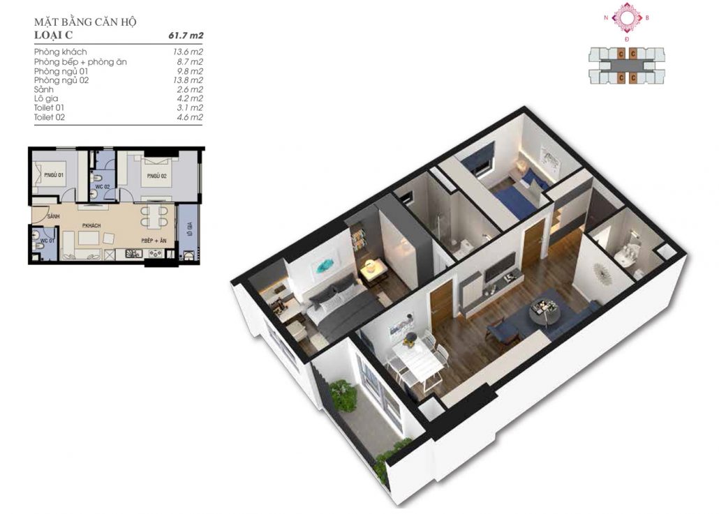 Chung cư Thăng Long Capital được thiết kế với các loại diện tích hợp lý, từ 2 tới 3 phòng ngủ mang lại nhiều sự lựa chọn cho khách hàng.