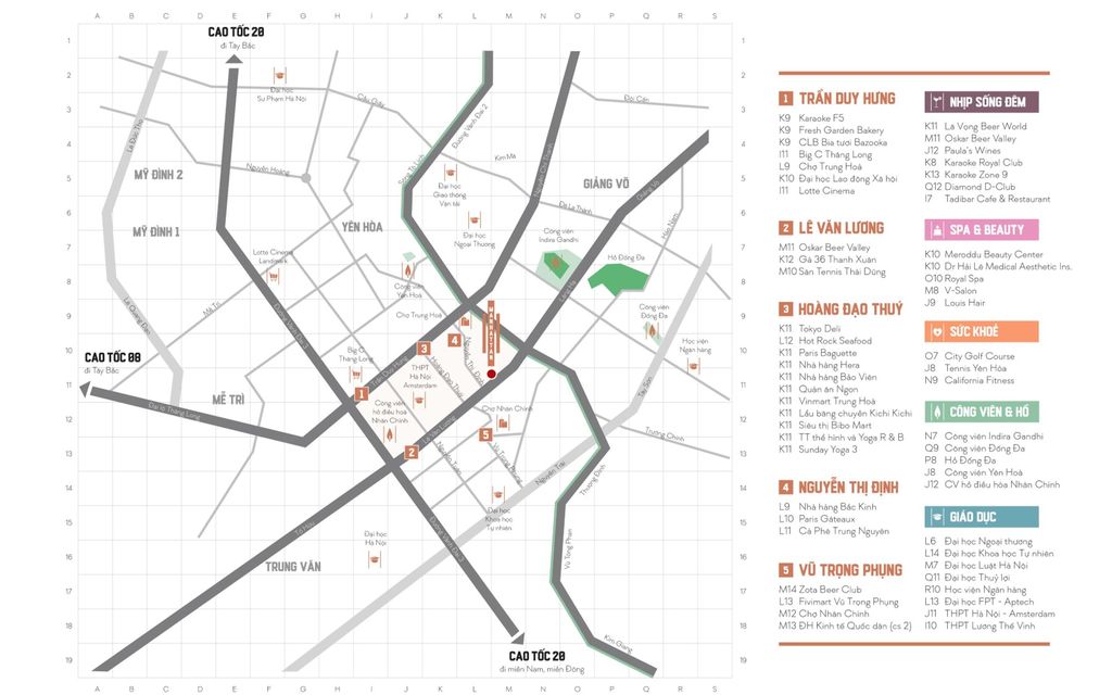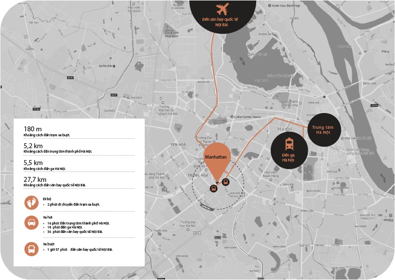 Từ Manhattan Tower được bao quanh là nhiều dự án cao cấp cùng khu vực: The Golden Palm, Star City … Giáp các tuyến đường chính: Láng Hạ, Lê Văn Lương, Hoàng Ngân… Những nơi dân cư hiện hữu, đông đúc. Từ đây quý khách hàng dễ dàng di chuyển tới đường lớn như Khuất Duy Tiến, Nguyễn Chí Thanh, Trần Duy Hưng và khu vực trung tâm Hà Nội. Các địa điểm lớn như: Sân vận động Mỹ Đình, BX Mỹ Đình, rạp chiếu phim quốc gia…chỉ tầm 5 phút.