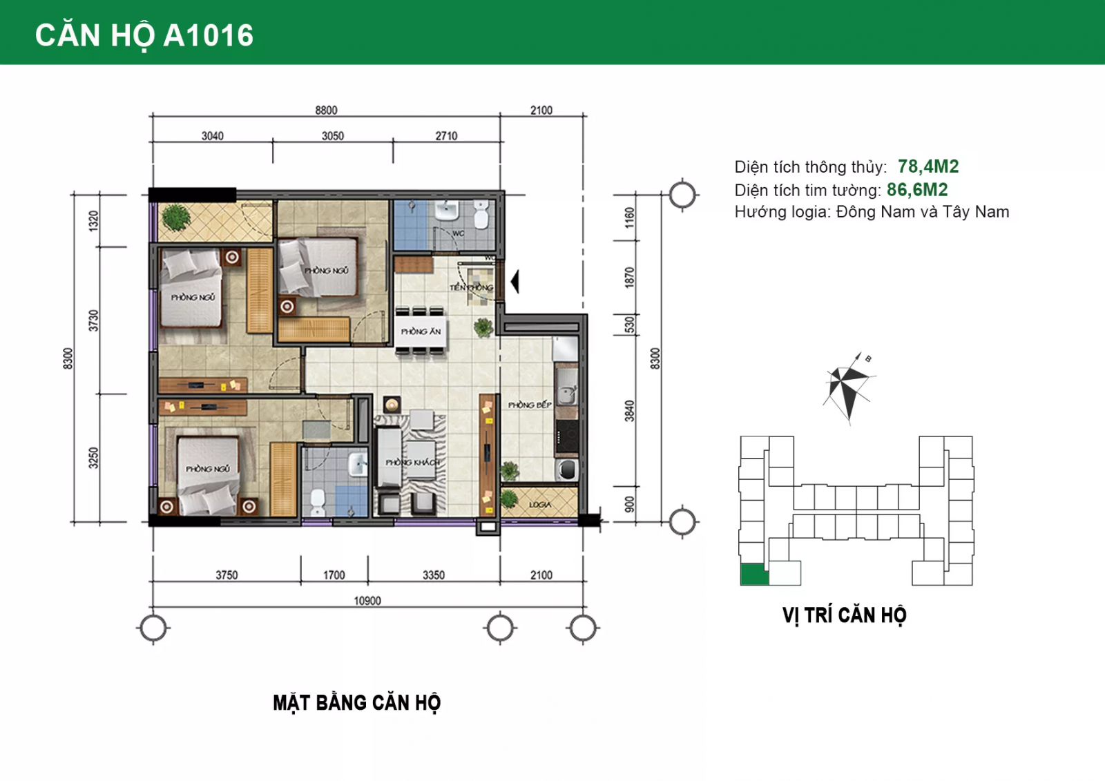 Tổng diện tích sàn (21 tầng nổi): 72.401 m2