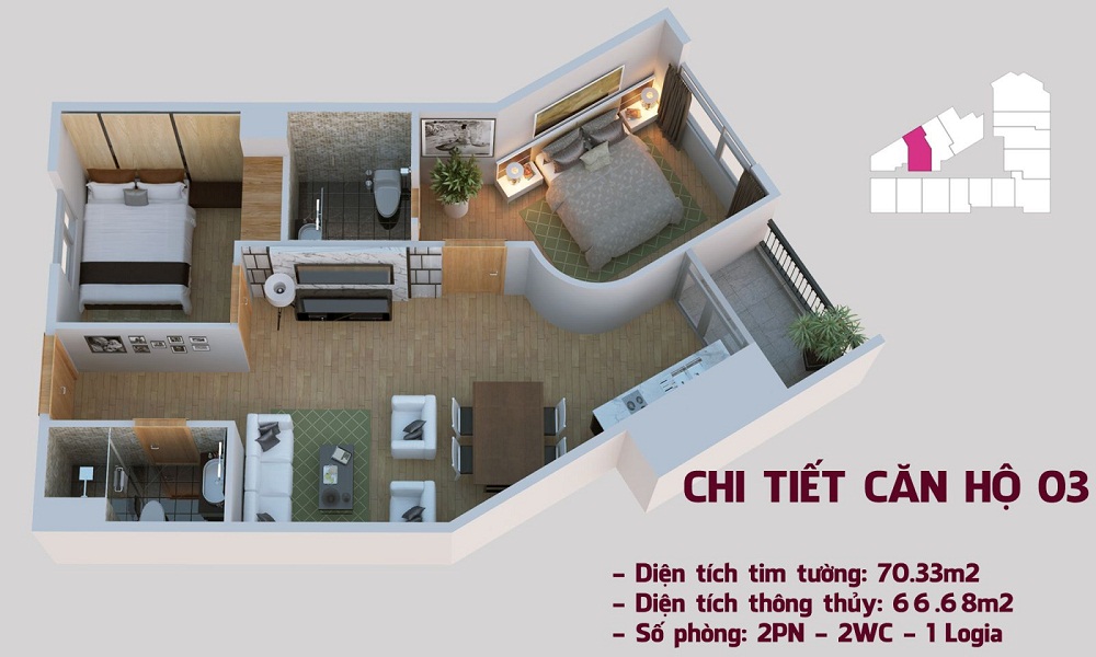 Diện tích căn hộ đa dạng đáp ứng nhu cầu và khả năng tài chính của nhiều đối tượng khách hàng. Các căn hộ luôn có đủ không gian chung cho đại gia đình và không gian riêng tư cho từng thành viên. Dù có diện tích nhỏ nhưng được thiết kế tối giản, tối ưu hóa không gian đặc biệt phù hợp với gia đình nhỏ hoặc người trẻ tuổi và hiện đại.