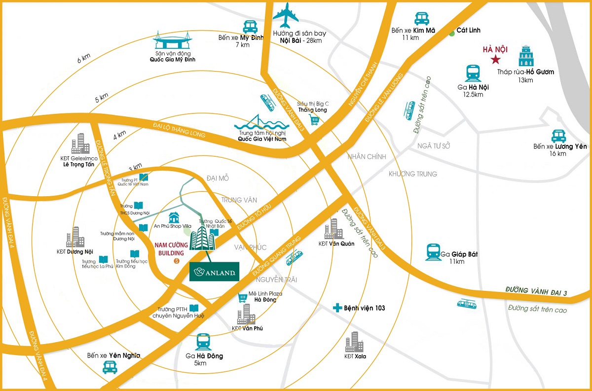 Từ vị trí Chung cư Anland chúng ta có các hướng đi vào trung tâm thành phố như sau: