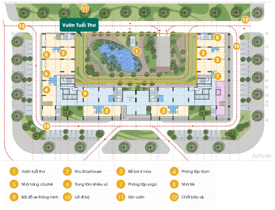 Tiện ích nội khu: Tại Anland Complex hệ thống bể bơi bốn mùa tại tầng 3 của tòa nhà cùng với khu mua sắm, bệnh viện, trường học quốc tế, khu phức hợp thể thao, khu vui chơi trẻ em, rạp chiếu phim, khu tập Gym, sân Tennis, sân Golf v.v…, võ thuật, trung tâm khiêu vũ, yoga, café sách…và chắc chắn không thể bỏ qua VƯỜN TUỔI THƠ – tiện ích đặc biệt dành riêng cho cư dân nhí tại Anland Complex Dương Nội