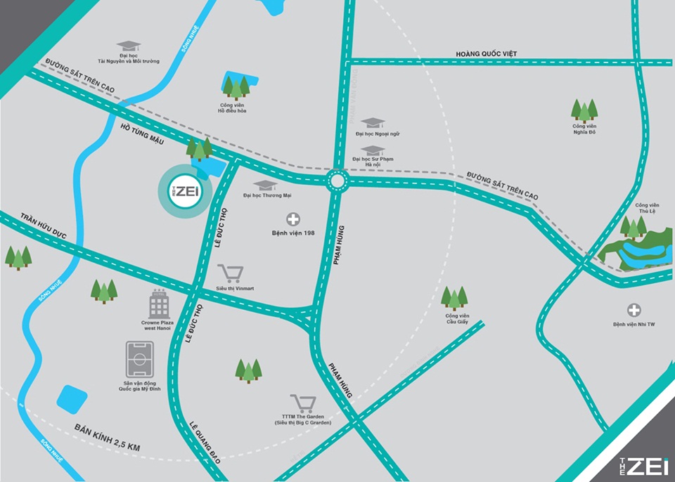 The Zei tọa lạc tại số 2 đường Lê Đức Thọ, phường Mỹ Đình II, quận Nam Từ Liêm – được coi là trung tâm hành chính, văn hóa , kinh tế, xã hội của TP Hà Nội và cả nước. Hơn thế nữa đây còn là điểm nối giao thông quan trọng trên trục đường vành đai 3, Hoàng Quốc Việt, Láng Hòa Lạc, đường 32 …