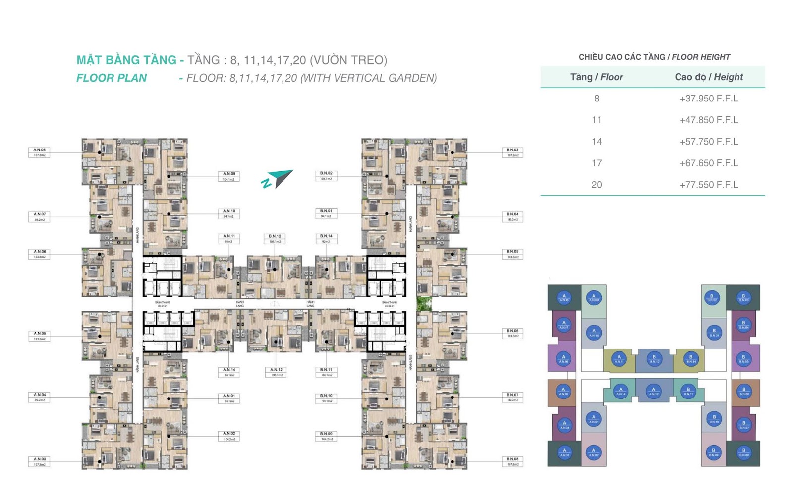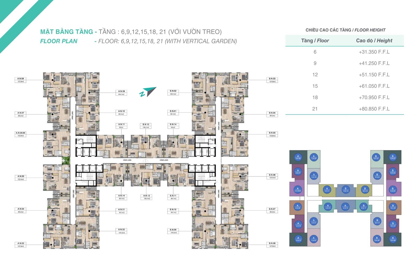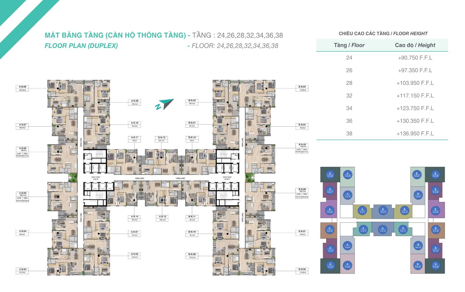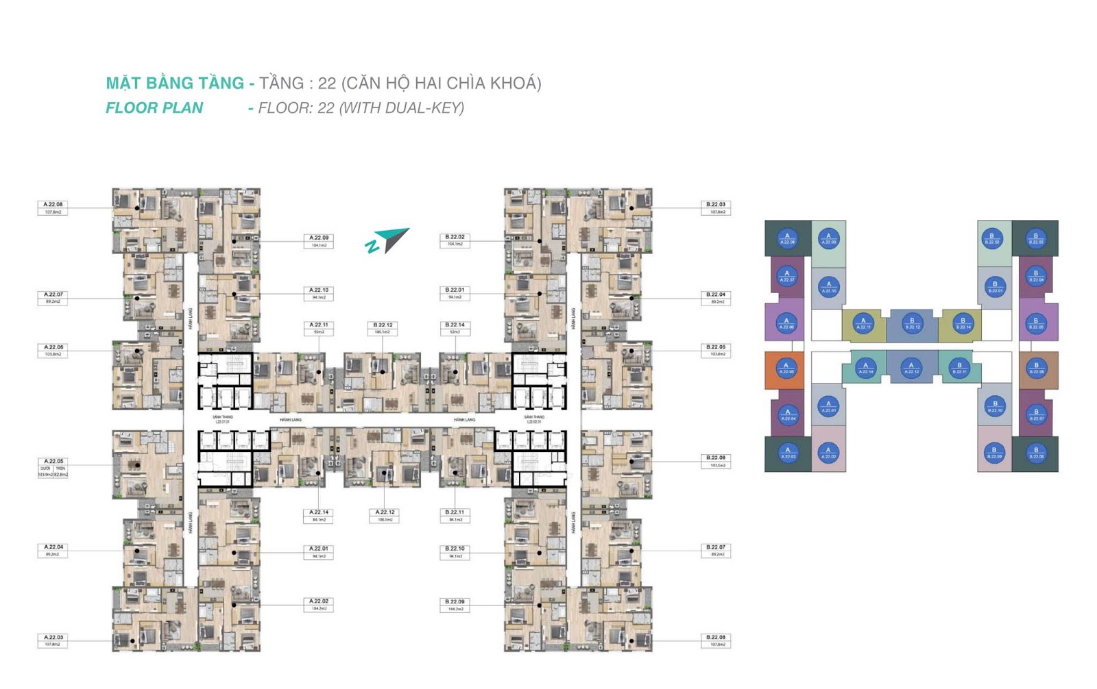 - 93 căn hộ Dual key (3 ngủ) : 104 – 105 m2 (thông thủy)