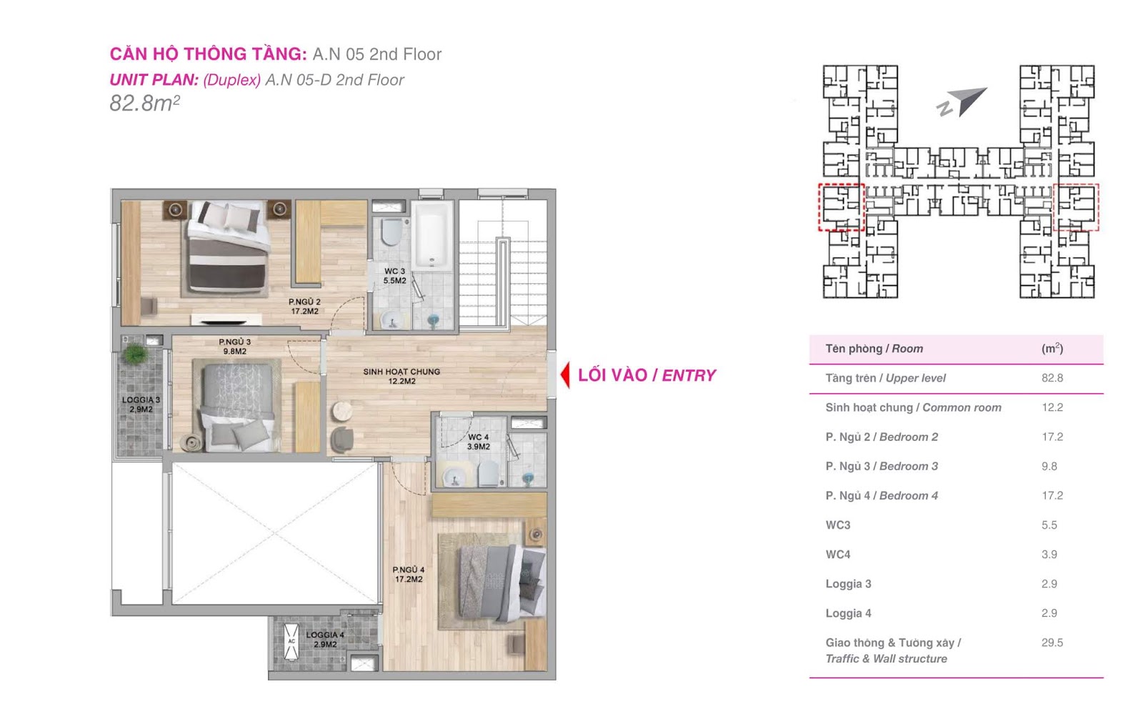- 33 căn hộ Duplex (4 ngủ): 181.5 – 181.7m2 (thông thủy)
