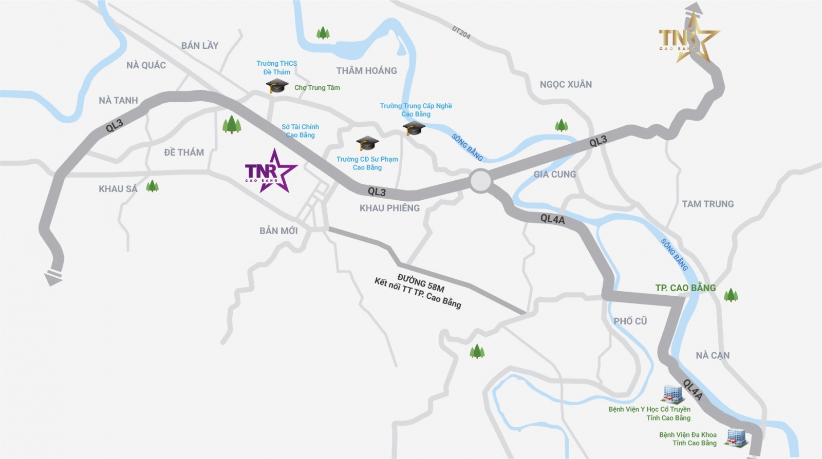 Với mong muốn góp phần xây dựng một thành phố Cao Bằng theo hướng hiện đại hóa đặc biệt về chuẩn mực sống, với hạ tầng tiện ích dịch vụ đồng vụ, TNR Holdings xây dựng phát triển dự án tại trung tâm hành chính mới nhằm mang đến cho khách hàng một không gian sống mới hoàn toàn khác. Đây là một trong những mảnh đất kim cương duy nhất còn sót lại nằm tại vị trí trung tâm của khu hành chính mới thành phố cao bằng với vị trí chiến lược nằm ngay cạnh Sở Tài chính, Hải quan, Quảng trường thành phố…