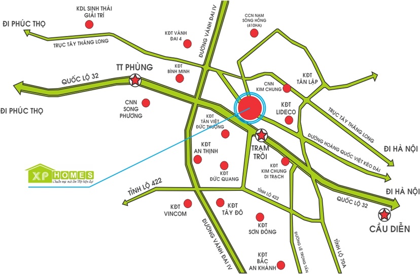 Chung cư XP Homes Star thuộc khu đại giới hành chính mở rộng trong tương lai và được đánh giá sẽ trở thành một vệ tinh của Hà Nội. Hoài Đức trở thành một cửa ngõ quan trọng của thủ đô Hà Nội với nhiều huyết mạch giao thông quan trọng như Đại lộ Thăng Long, quốc lộ 32, các trục tỉnh lộ 422, 423 và nhiều dự án như đường vành đai 4 và các khu đô thị. Ngoài ra XP Homes Star Hoài Đức nằm trong quần thể các KĐT mới Tân Tây Đô, KĐT cao cấp Bắc 32 (Lideco), khu nhà ở mới Tân Việt – Đức Thượng, KĐT Kim Chung – Di Trạch, khu nhà ở mới Tân Việt – Đức Thượng, trường đại học Thành Đô, Bệnh viên 198, Đại học Công Nghiệp, Đại học Thương mại,…