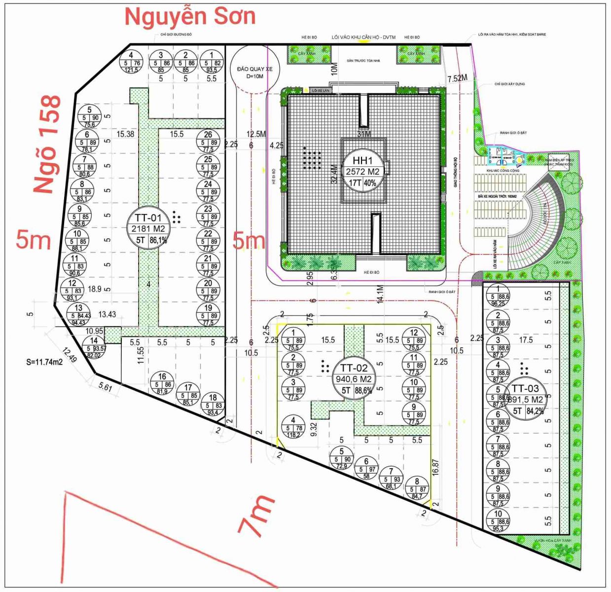 Diện tích nhà ở liền kề: 2.152m2, bao gồm 48 lô
