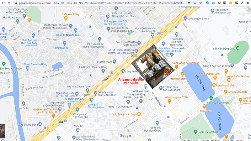 Trung tâm thương mại, Văn phòng, chung cư cao tầng Hesco - Ariyana Lakeside tọa lạc tại trung tâm quận Hà Đông, ngã tư đường Trần Phú và đường Nguyễn Khuyến, nằm ngay gần mặt hồ Văn quán, gần các trường đại học lớn của Hà Nội như trường an ninh, trường bưu chính viễn thông, trường đại học kiến trúc Hà Nội, là một dự án nổi bật của khu vực phía đông Hà Nội với quy mô hoành tráng, thiết kế hiện đại đem lại nhiều dịch vụ tiện ích cho cư dân sinh sống ở nơi đây.