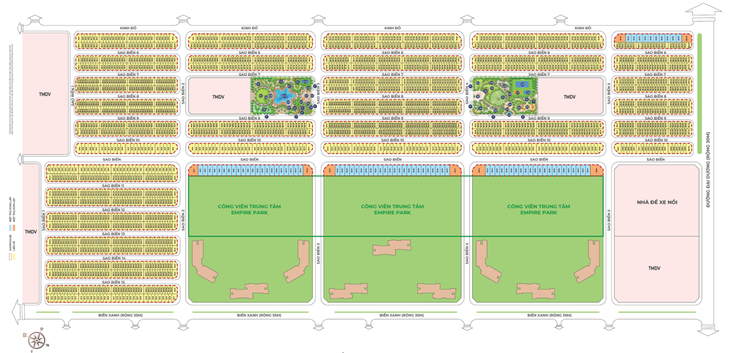 Trong đó 2 phân khu Kinh Đô Ánh Sáng và Sao Biển được quy hoạch thành các khu phố sôi động với 100% các căn được thiết kế theo mô hình nhà phố shophouse kết hợp 2 công năng là ở và kinh doanh.