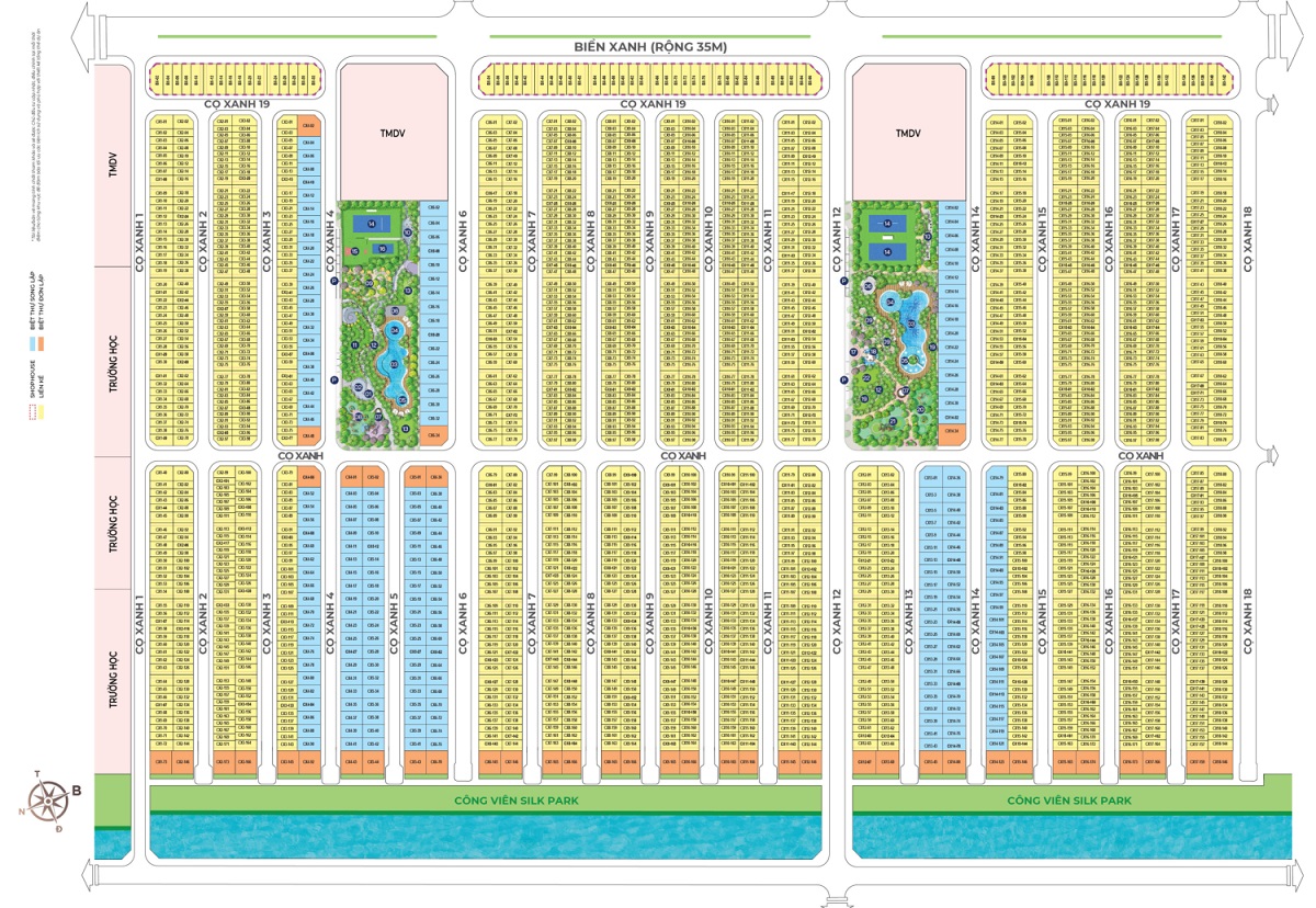 Khu thấp tầng thì bao gồm 8 phân khu với 2 hình thức quản lý vận hành là: