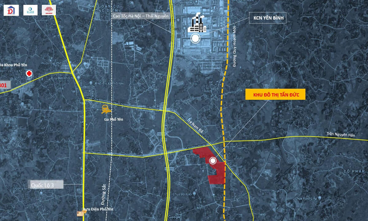 - Phía Tây giáp với nút giao Yên Bình, cao tốc Hà Nội - Thái Nguyên.