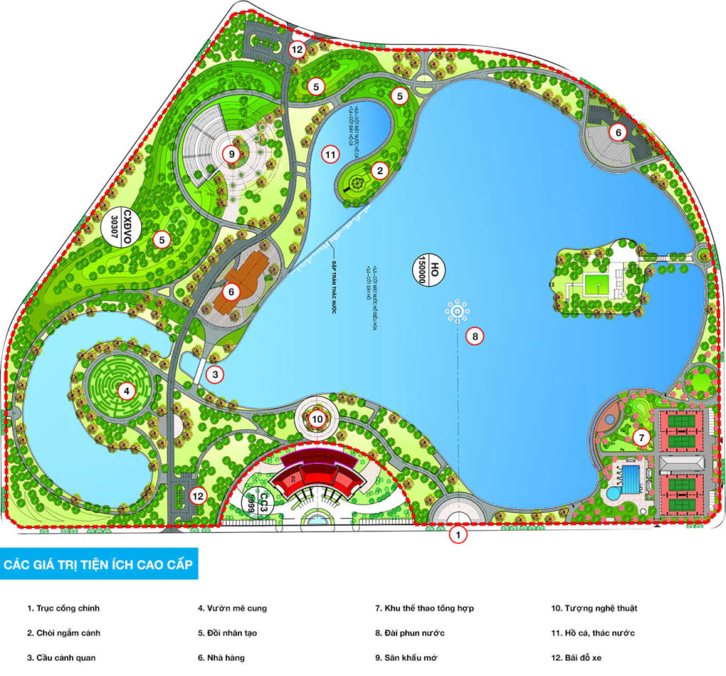 Điểm nhấn ấn tượng nhất của dự án là nằm ngay sát hồ điều hòa rộng tới 15ha với nhiều không gian xanh và đường dạo bộ rộng thoáng. Ở vị trí trung tâm hồ điều hòa là hệ thống đài phun nước hiện đại, khu thác tràn và đồi vọng cảnh, một địa điểm lý tưởng để cả gia đình quây quần và sum tụ trong các bữa tiệc ngoài trời ấm cúng. Bên cạnh đó, hệ thống tiện ích đẳng cấp: 2 bể bơi ngoài trời công nghệ Đức, 2 khu vui chơi trẻ em nội khu hiện đại, 2 quảng trường rộng hơn hai ngàn m2 cùng 50 tiện ích thiết thực khác cũng sẽ được triển khai trong thời gian tới.