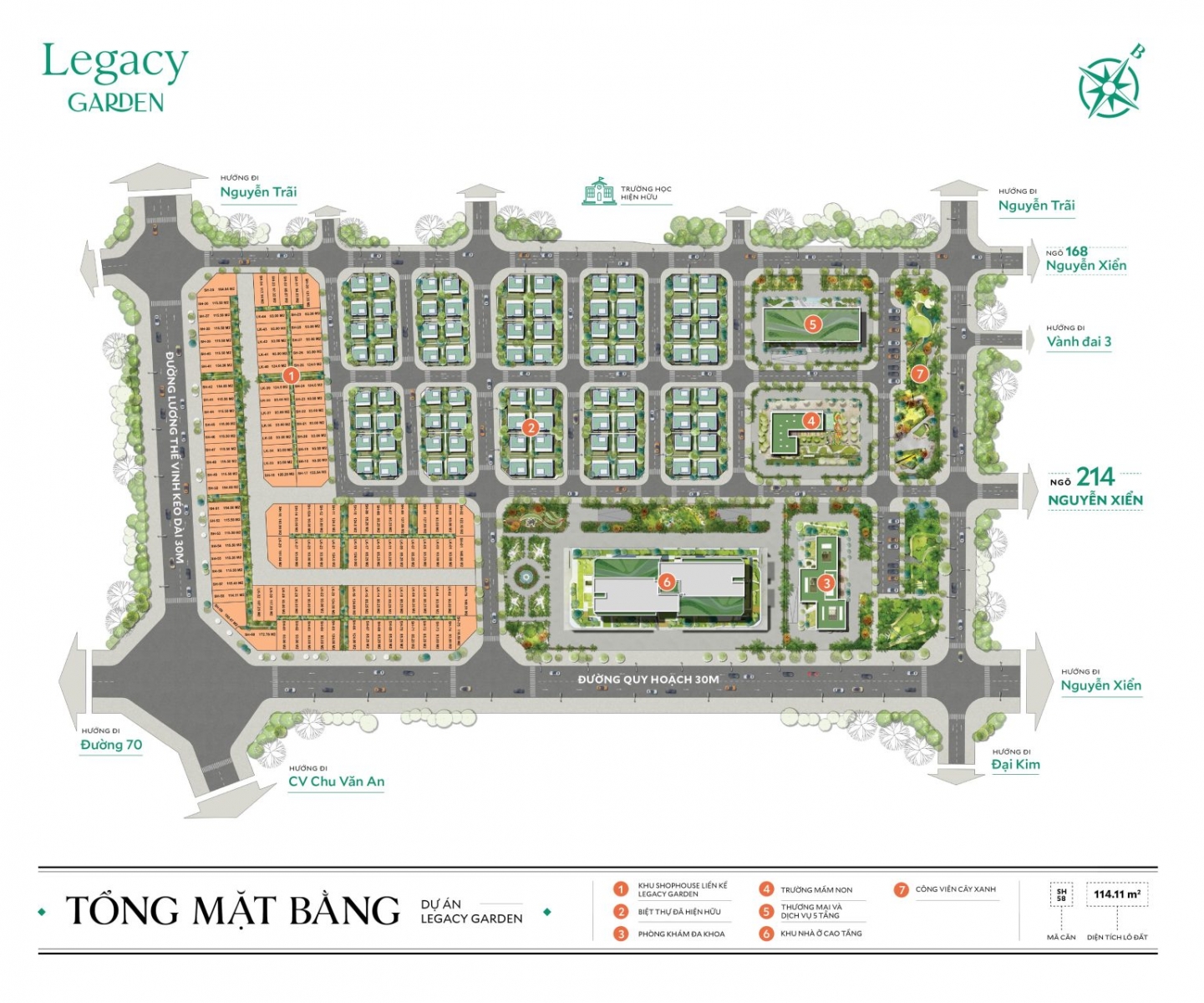 Môi trường “xanh” với công viên trung tâm nơi mệnh danh là trái tim của cộng đồng, bao quanh bởi những con đường dành cho người đi bộ, và những khoảng không gian mở như suối nước, hòn non bộ, ghế đá ven đường cùng các dàn hoa để nghỉ chân.