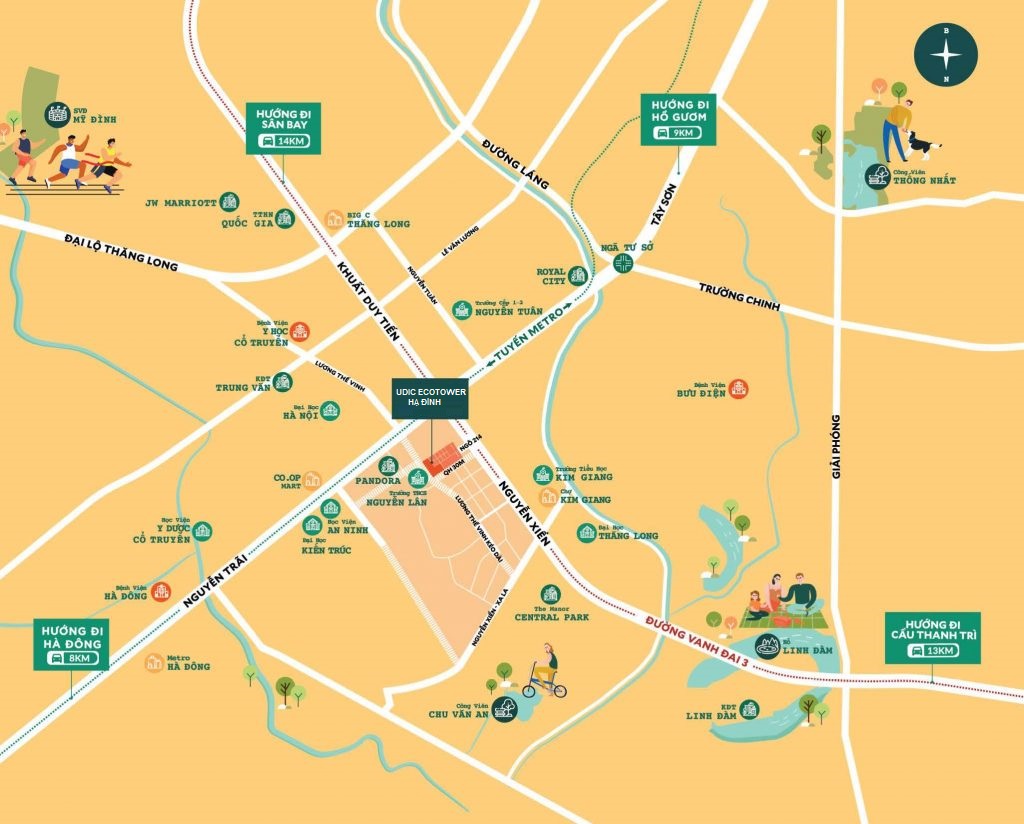 Từ Udic Eco Tower Hạ Đình, cư dân có thể dễ dàng kết nối tới các địa điểm trung tâm: 15 phút tới Hồ Hoàn Kiếm, 6 phút tới công viên Yên Sở, hồ Linh Đàm, di chuyển đến vành đai 3 hay cao tốc Hà Nội- Ninh Bình, quốc lộ 1A chỉ mất 3 phút, các trường Đại học Kinh tế quốc dân, Đại học Bách Khoa, Y Hà Nội… chỉ mất 10 phút. Không những vậy, với quy hoạch của thành phố trong tương lai gần, huyện Thanh Trì sẽ được quy hoạch để trở thành một quận mới. Khi đó, Nhà ở xã hội 486 Ngọc Hồi sẽ là một trong những dự án nổi bật nằm giữa trung tâm hành chính, văn hóa của quận Thanh Trì, thừa hưởng những lợi ích to lớn về cơ sở hạ tầng, giao thông, các vấn đề y tế, giáo dục, văn hóa…