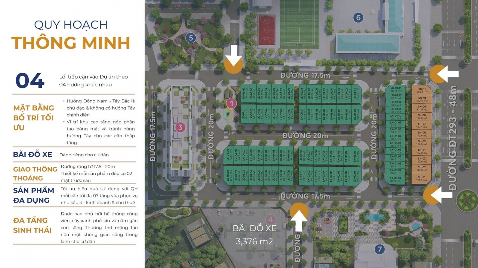 - Shophouse/Liền kề tự xây: 81 – 108m2, tối đa 7 tầng , mật độ xây dựng 100%