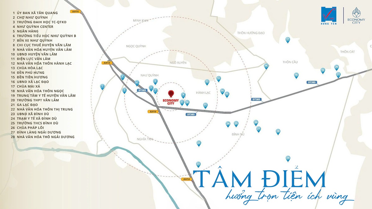 Economy City toạ lạc tại trung tâm thị trấn Như Quỳnh, chỉ cách trung tâm Hà Nội 18km và thuộc khu vực tập trung nhiều khu công nghiệp nhất Hưng Yên sẽ mang tới những cơ hội đầu tư an toàn, sinh lời cao.