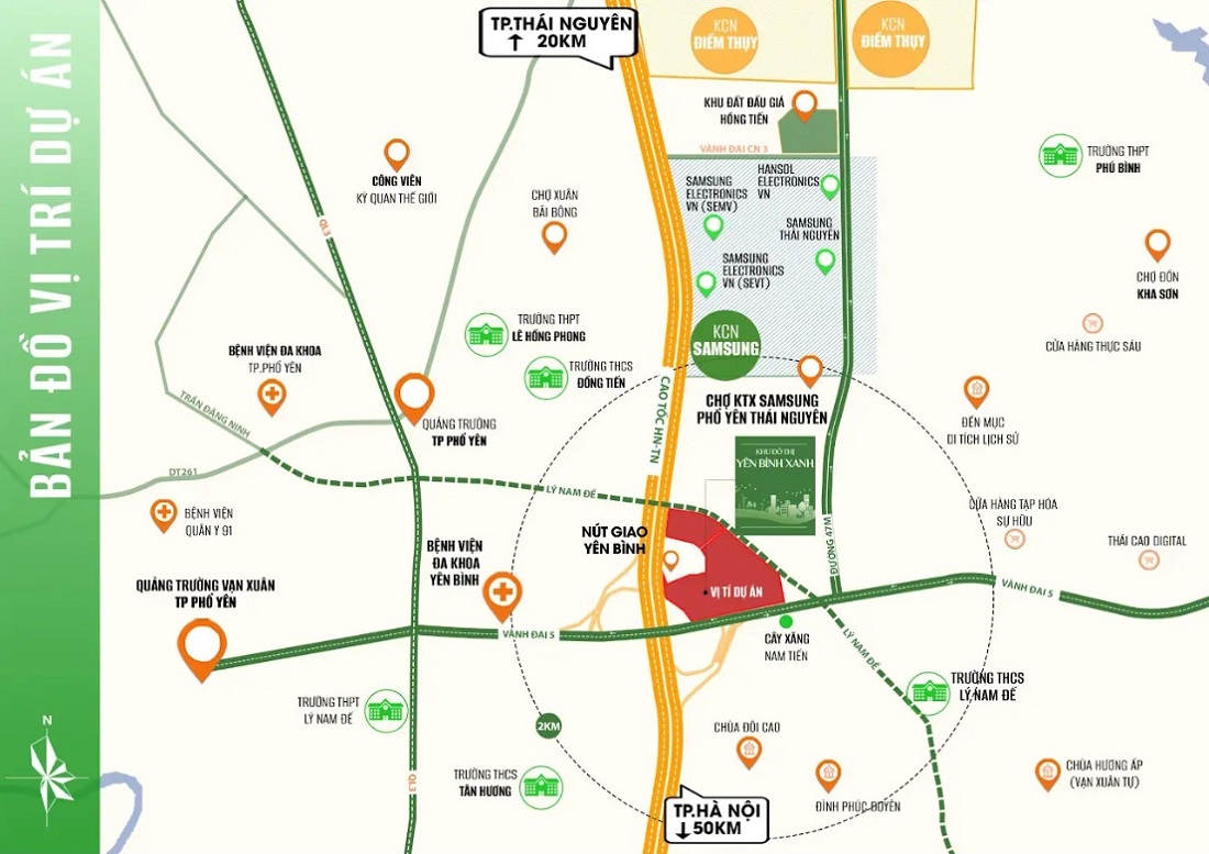 Không chỉ thừa hưởng lợi thế ngay cửa ngõ phía Nam Thái Nguyên, tiếp giáp với Hà Nội, Yên Bình Green City Phổ Yên - Thái Nguyên dễ dàng kết nối tới Vành đai 5 với thiết kế 6 làn đường, lòng đường rộng 35m, kết nối 36 quận, huyện, thành phố trực thuộc 8 tỉnh (Hà Nội, Hòa Bình, Hà Nam, Thái Bình, Hải Dương, Bắc Giang, Vĩnh Phúc và Thái Nguyên).