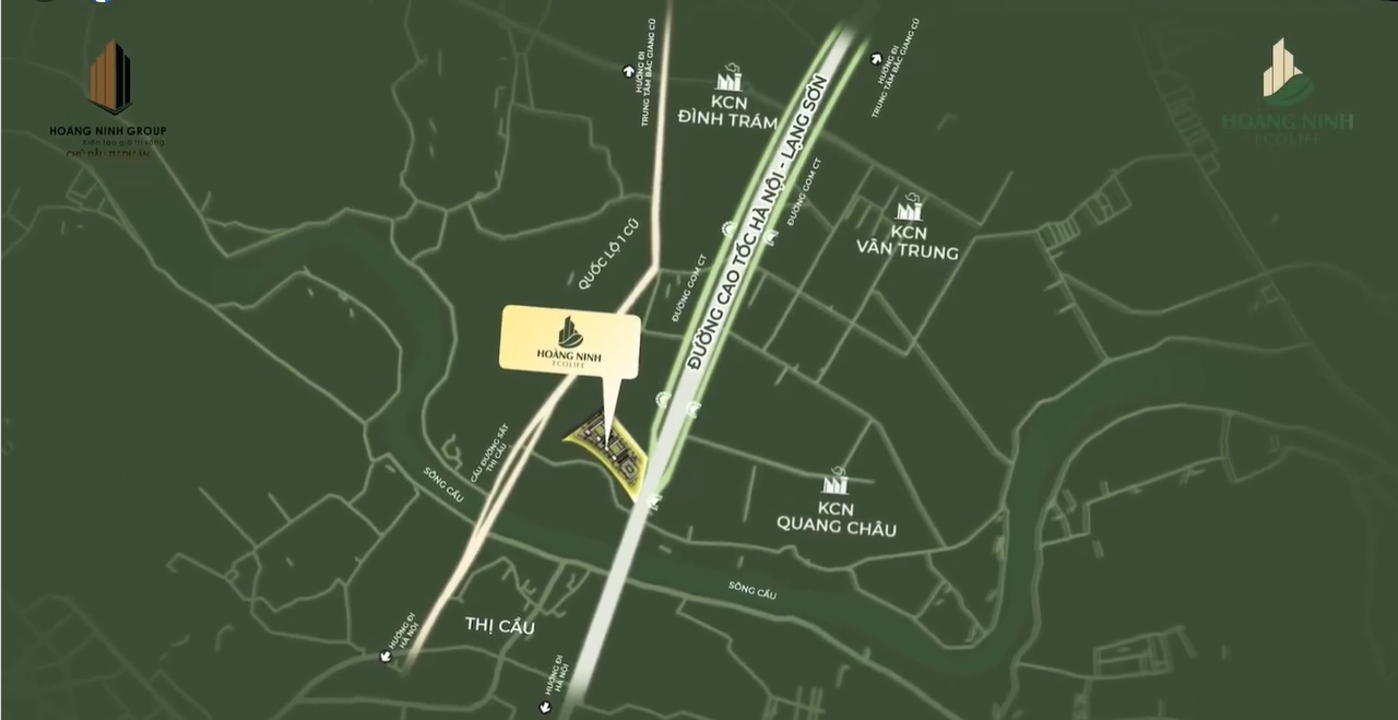 Dự án Nhà ở xã hội Hoàng Ninh Ecolife Bắc Giang nằm giữa 3 khu công nghiệp lớn nhất của Bắc Giang gồm: KCN Quang Châu, KCN Vân Trung và KCN Đình Trám. Bên cạnh đó, dự án còn nằm cạnh đường cao tốc Hà Nội – Bắc Giang, trục kết nối đi Lạng Sơn, Bắc Ninh để đi các tỉnh khác của khu vực phía Bắc và các địa phương lân cận. Với vị trí thuận lợi này khi dự án hoàn thành sẽ giải quyết bài toán nhà ở cho công nhân, người lao động, mặt khác thúc đẩy hoạt động dịch vụ cho địa phương phát triển.